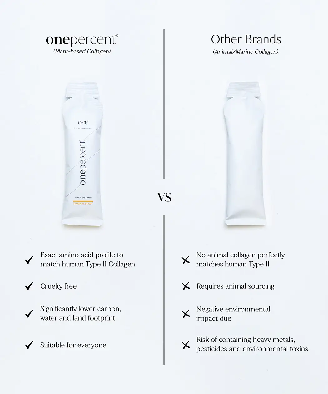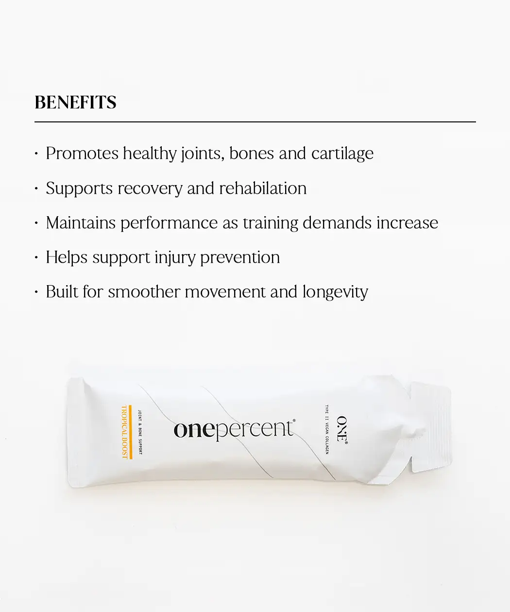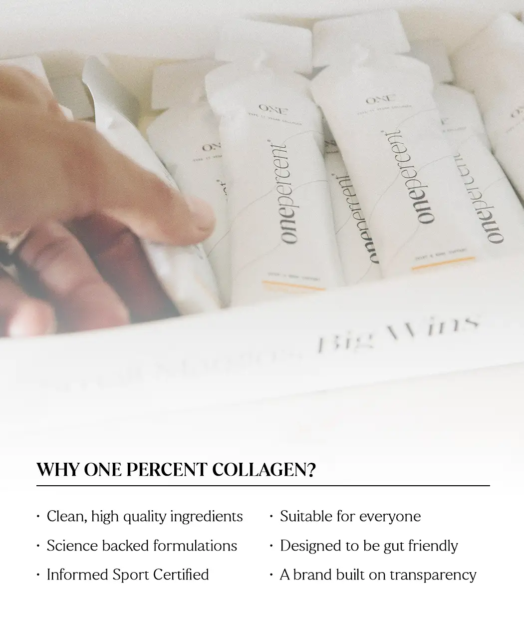 One Percent’s Type II Vegan Collagen is clean, science backed, transparent, and Informed Sport certified. This also gives the athlete and support staff complete trust in the product.