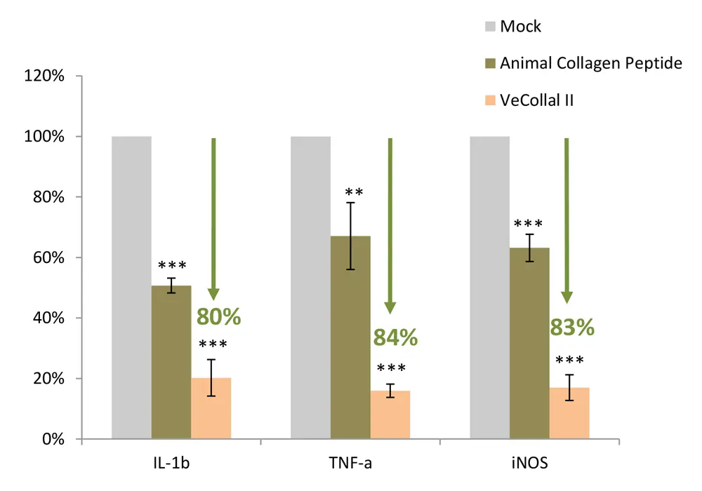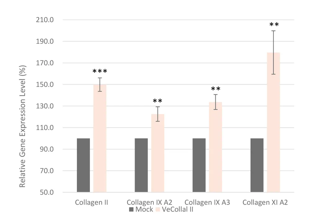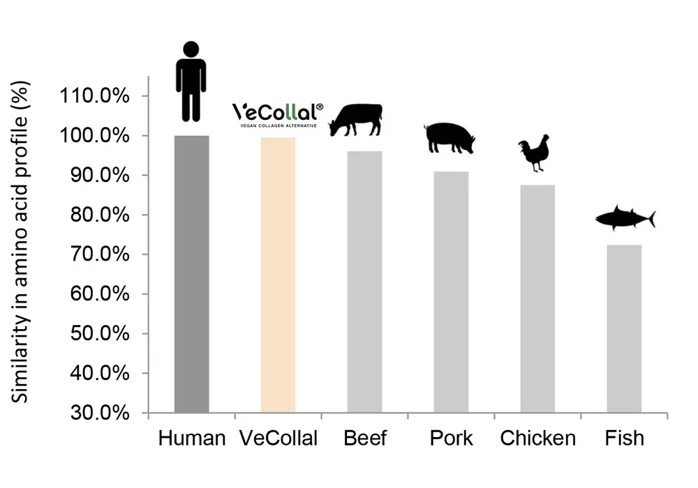 VeCollal® is made by combining plant based amino acids through advanced biotechnology and mimics Type II Human Collagen.